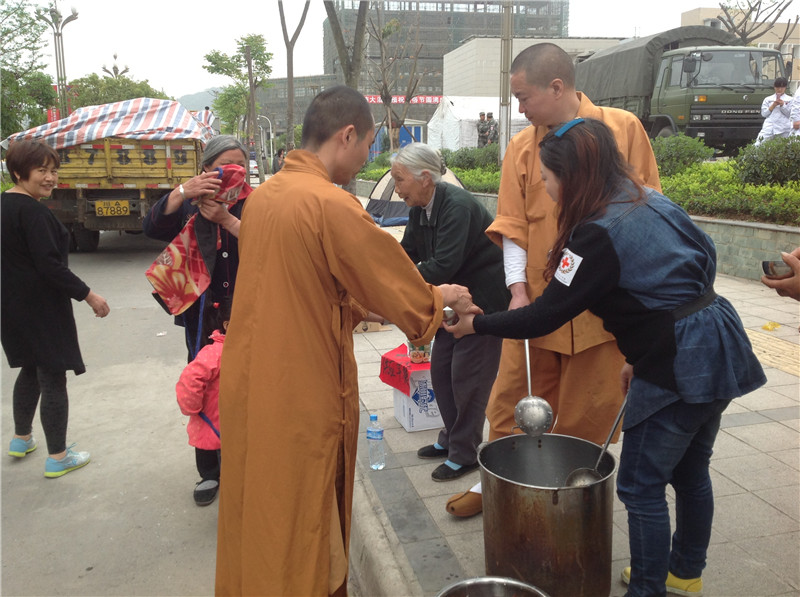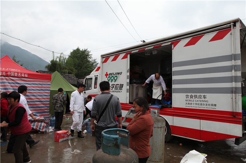 2013年5月2日,北京市红十字会999应急救援队为灾区群众临时供餐