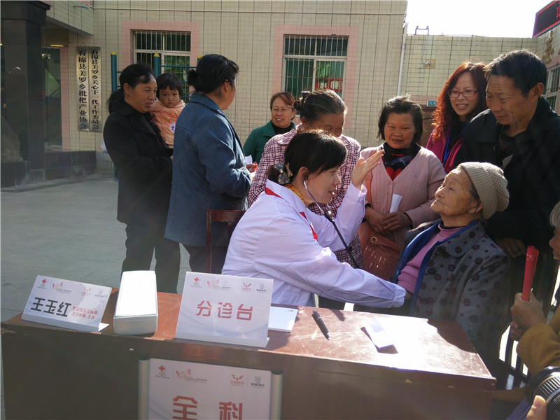 2014年11月3日,中国红十字基金会联合上海通用五菱汽车公司在石棉县美罗乡开展义诊活动(雅安市红十字会供图)