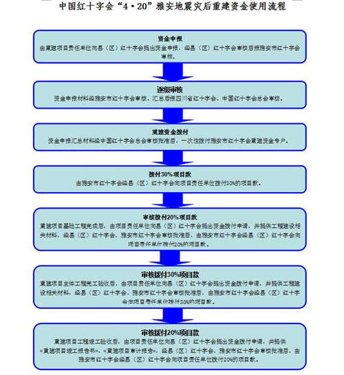 中国红十字会“4·20”雅安地震灾后重建资金使用流程图