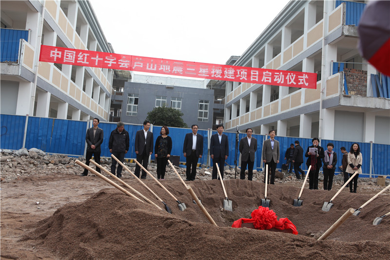2014年3月28日,中国红十字会芦山地震三星援建项目启动仪式在雨城区上里镇中心校举行(雅安市红十字会供图)