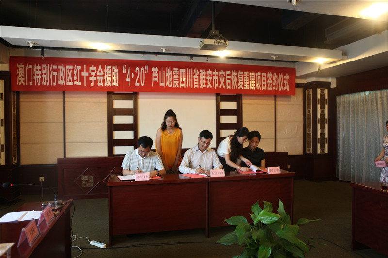 2014年6月21日澳门红十字会援建芦山地震灾后恢复重建项目签约仪式在雅安西康大酒店举行(雅安市红十字会供图)