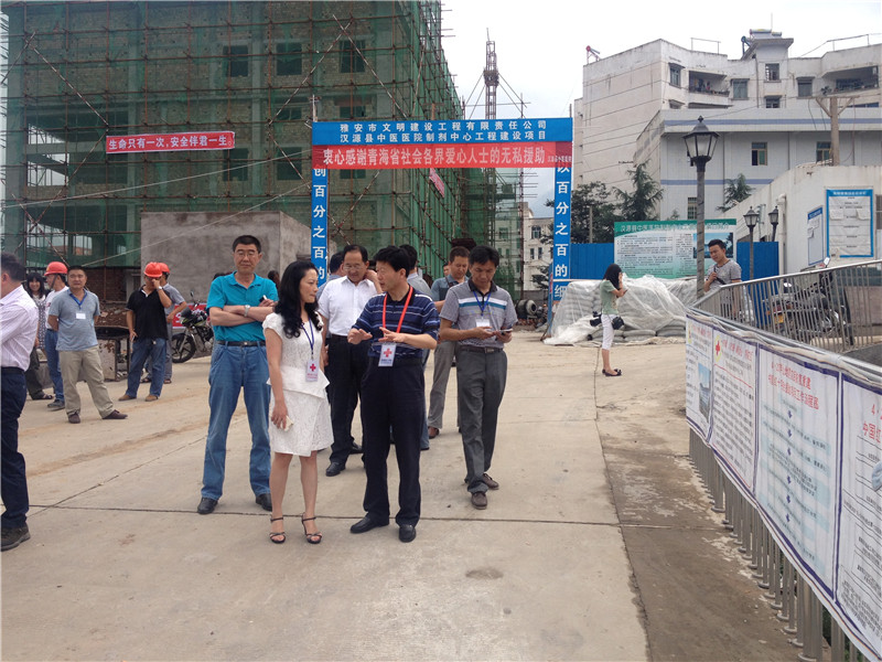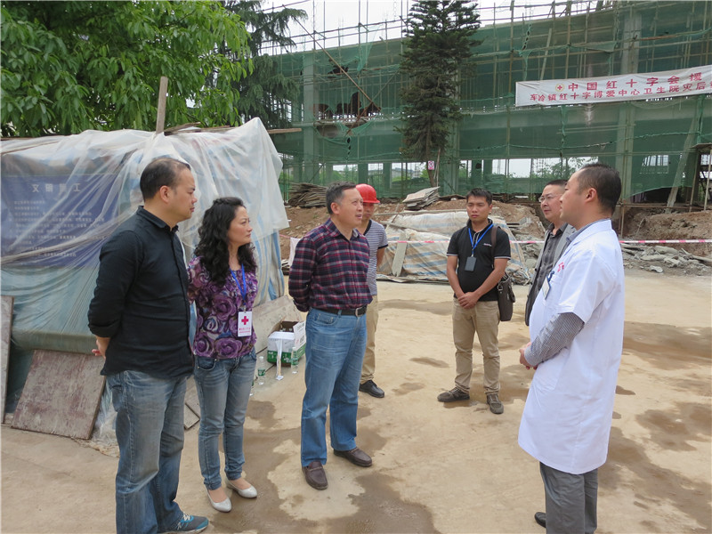 2014年5月7日,四川省红十字会副会长丁地禄带队督导名山区车岭镇博爱卫生院项目建设情况(雅安市红十字会供图)