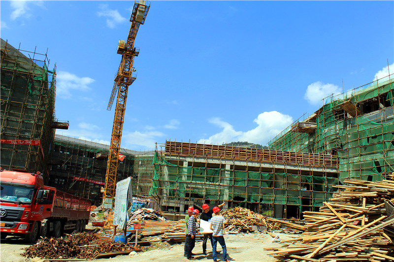2015年2月10日,青海省玉树州红十字会常务副会长格扎一行到汉源县查看汉源县中医医院制剂中心工程施工情况(汉源县红十字会供图 张滔 摄)