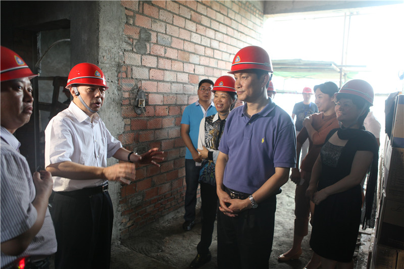 2014年7月8日,陈文华副省长(左二)调研红十字会援助芦山地震灾后重建项目,图为查看名山区车岭镇卫生院建设情况。(雅安市红十字会供图)