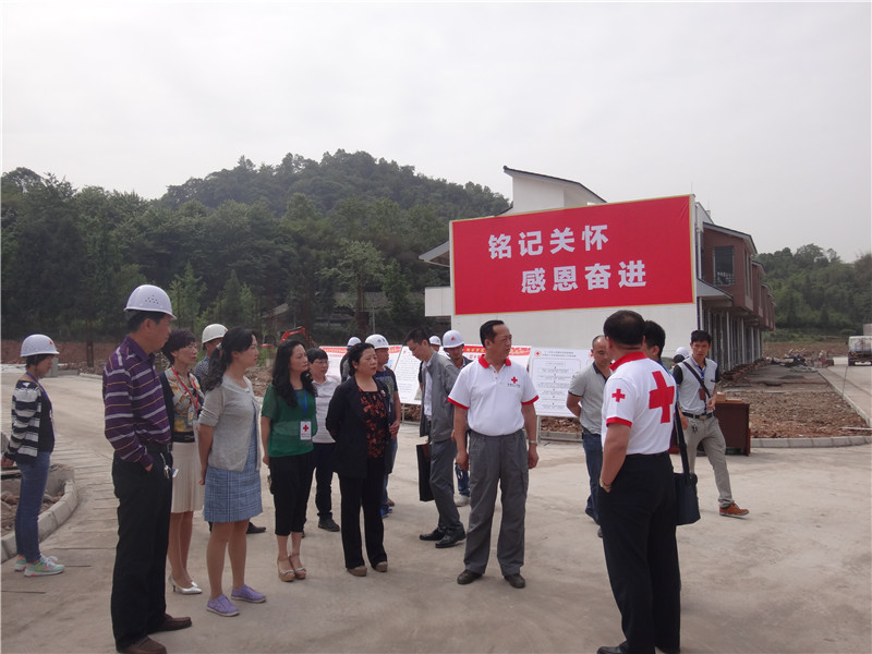 2016年4月,中山市政协副主席郭惠冰、市红十字会常务副会长简海燕一行回访调研芦山县龙门乡红星博爱新村项目(雅安市红十字会供图)