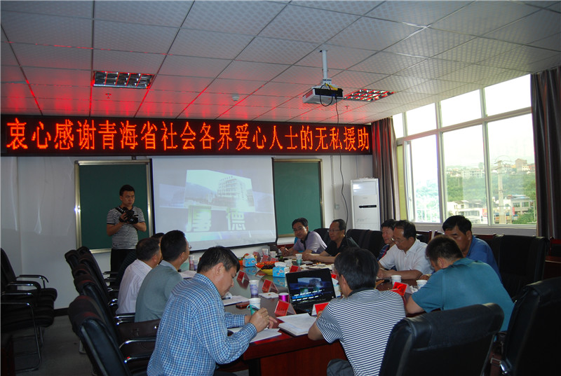 2015年6月,青海省红十字会党组书记、常务副会长孙林一行回访汉源县中医院,了解制剂中心项目建设情况,并与相关方座谈(汉源县红十字会供图 张滔 摄)