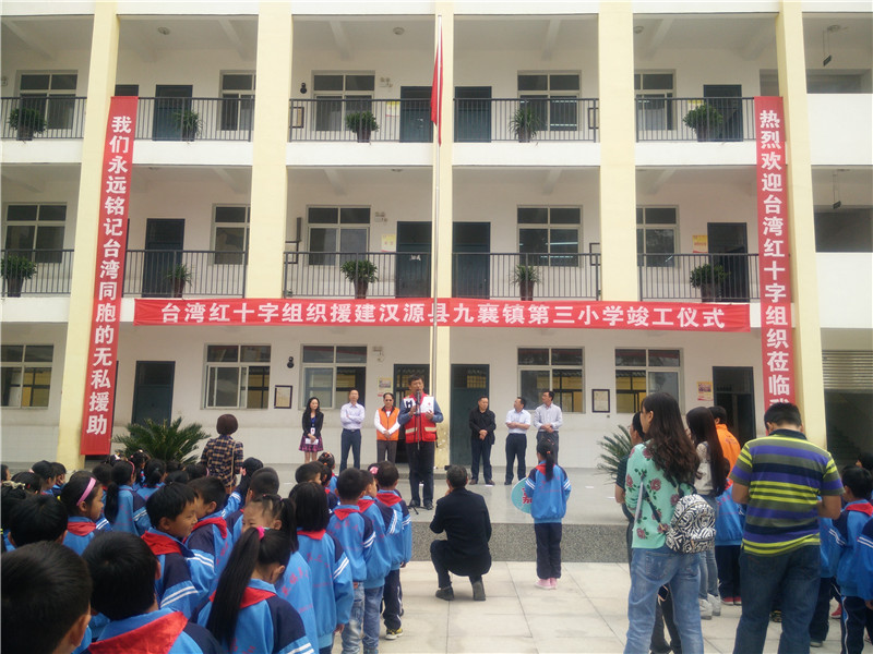 2015年9月21日,台湾红十字组织王清峰会长回访援建项目,参加汉源县九襄镇第三小学竣工仪式(汉源县红十字会供图)