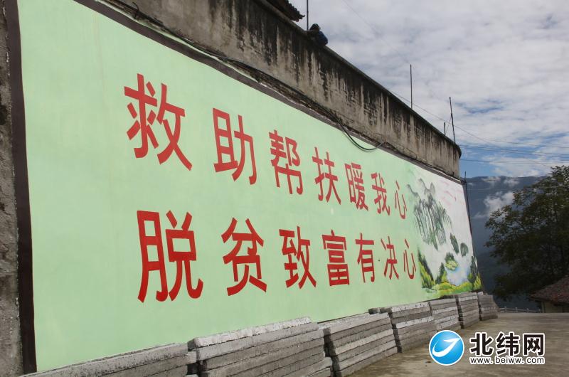 魁沙村的脱贫攻坚标语。